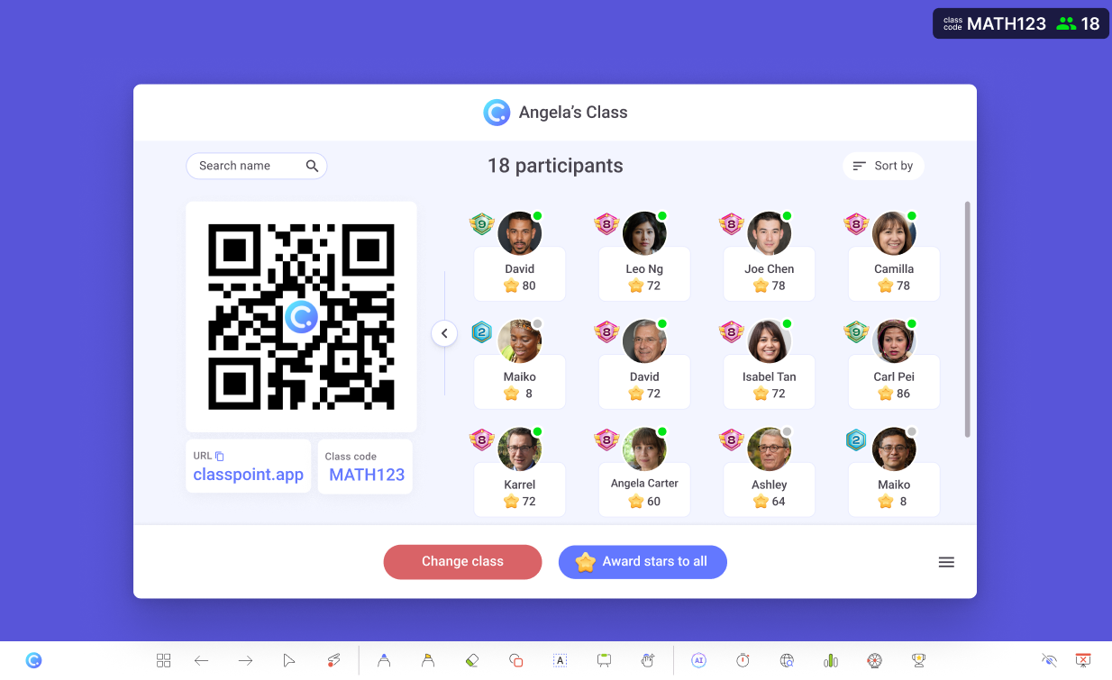 ClassPoint also offers both tools, but in a way that feels more straightforward for everyday use. Since ClassPoint sessions are tracked and saved with student profiles, its built-in Name Picker requires no manual setup. All the names are already there, ready to go.