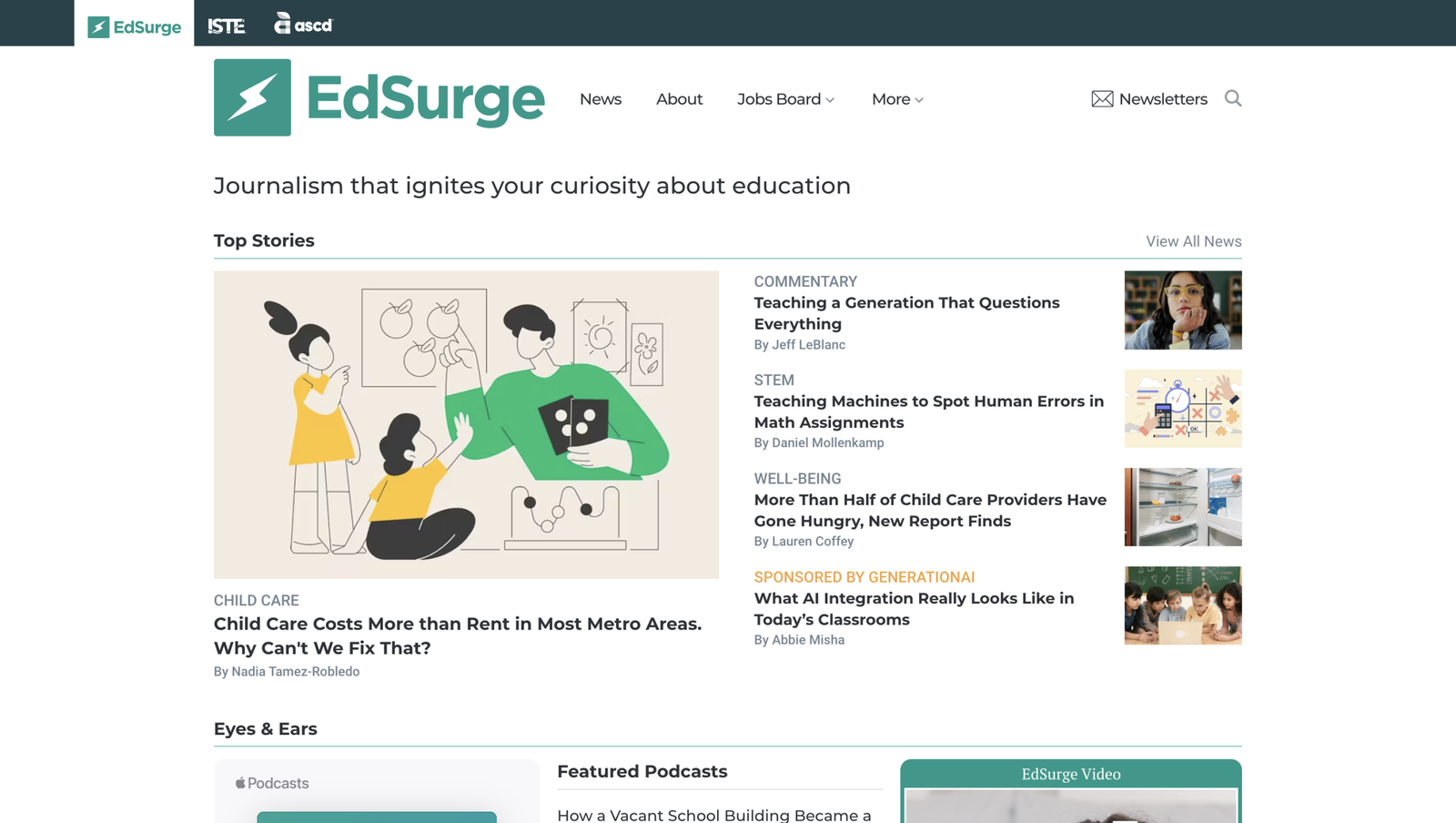 EdSurge is a nonprofit newsroom that illuminates the people, ideas, and technologies shaping teaching and learning. It began as an edtech news site and has grown into a magazine covering broader education innovation. EdSurge publishes stories on topics such as personalized learning, online education, AI tools in classrooms, and equity issues in education technology. It’s a great blog for educators interested in the cutting edge of education trends and edtech research.