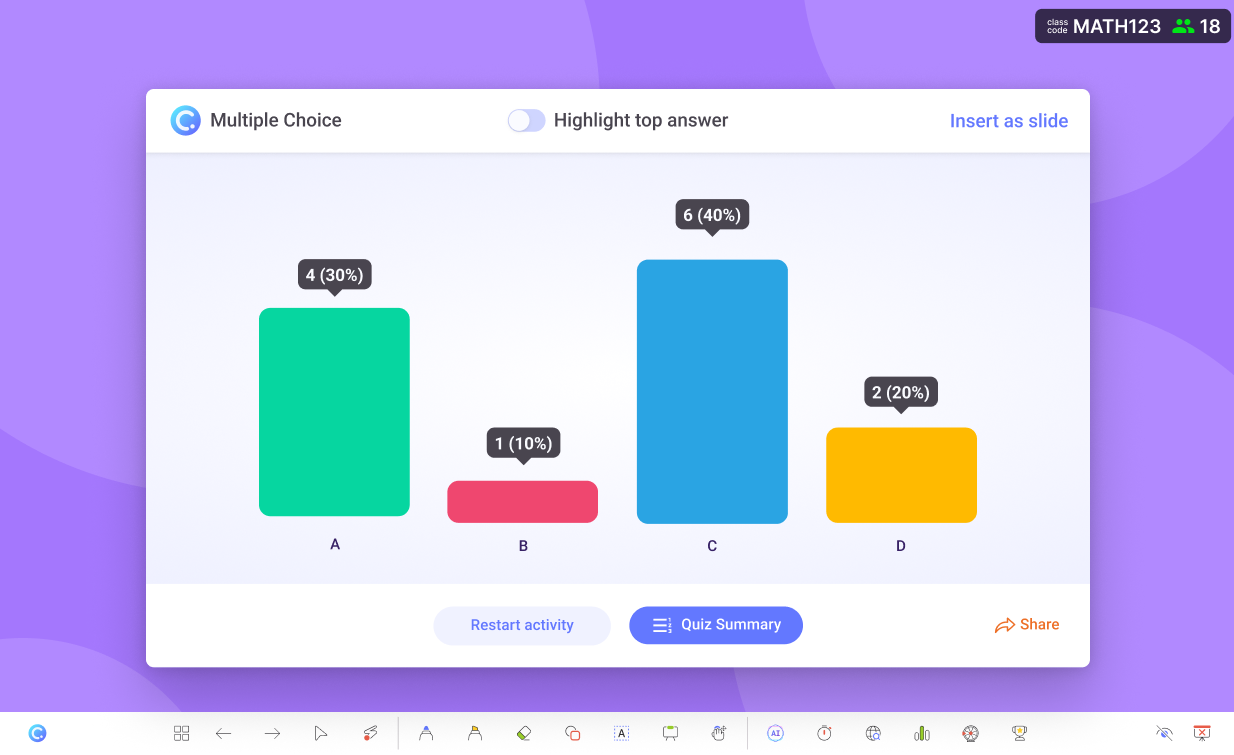 Its AI Quiz Generator can auto-create questions from existing slide content, and turn it into an interactive quiz right on the spot. Designed for seamless in-class use, ClassPoint keeps lessons flowing while boosting engagement and assessment without disrupting the teacher’s natural lesson delivery.