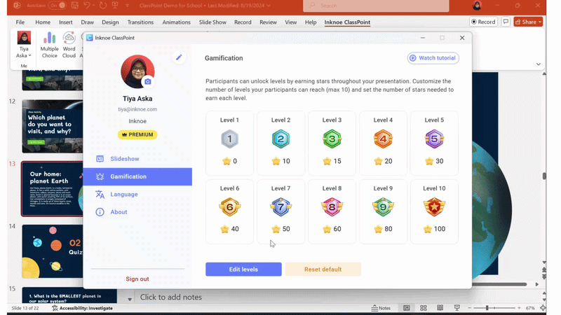 In ClassPoint, stars and custom badges, can track the actions you mark as worth credit—improvement since last round, a thoughtful explanation—not only who buzzed in first. What students see on the slide should match what you said when you gave the award.