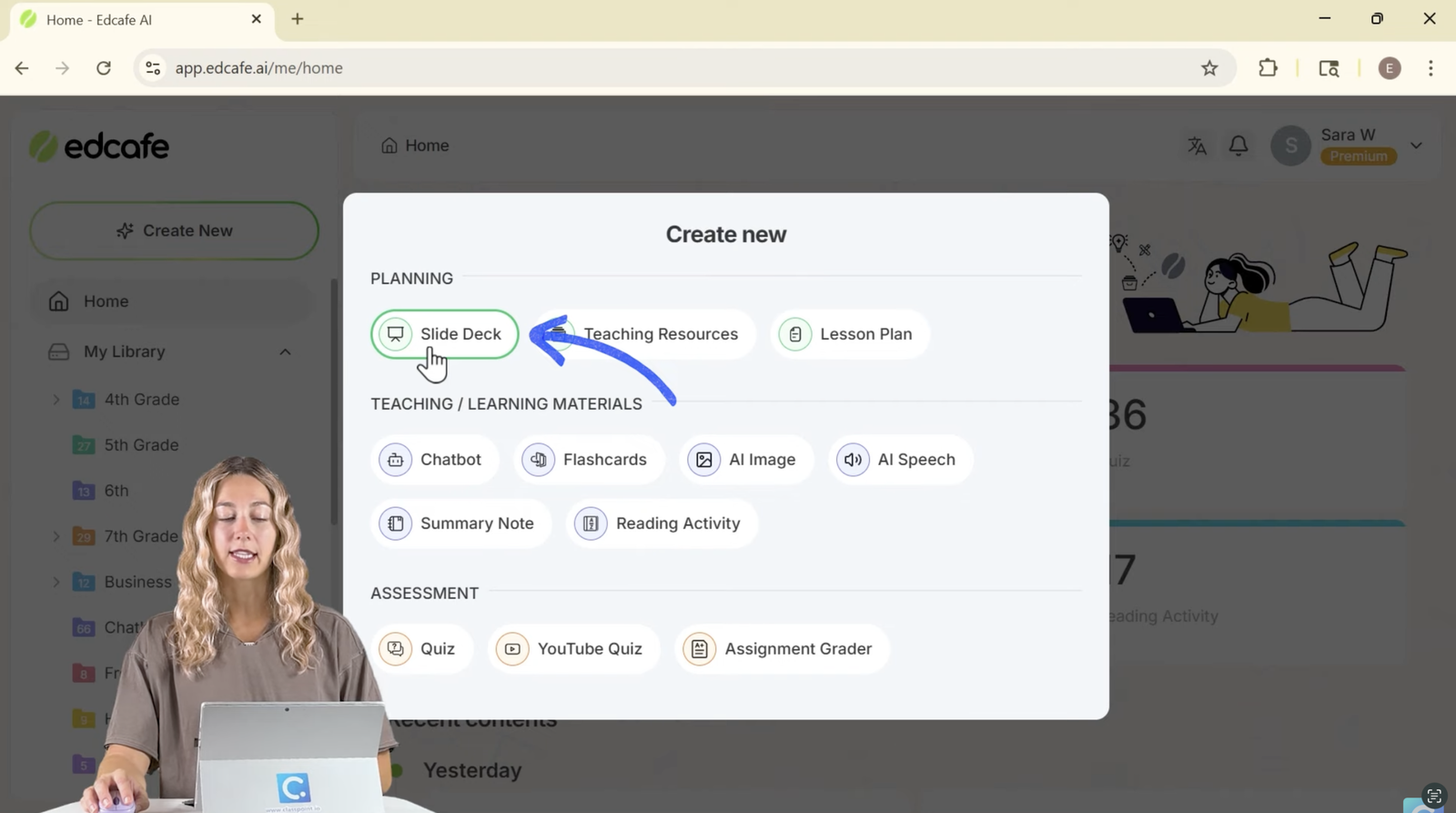 Step 1. Open Edcafe AI, click Create New, then select Slide Deck.