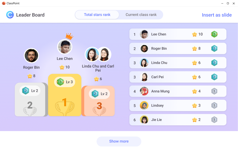 The difference depends on how you use motivation. If you’re weighing Slido vs ClassPoint for teachers who run classes daily, this is where it starts to matter. Slido’s leaderboard is great for a burst of energy during a review or a Friday quiz. ClassPoint’s system rewards consistency and tracks effort across weeks. If you want ideas for putting this into practice, here are some easy gamification examples for the classroom.