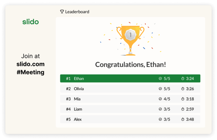 Slido gamifies through quizzes:
